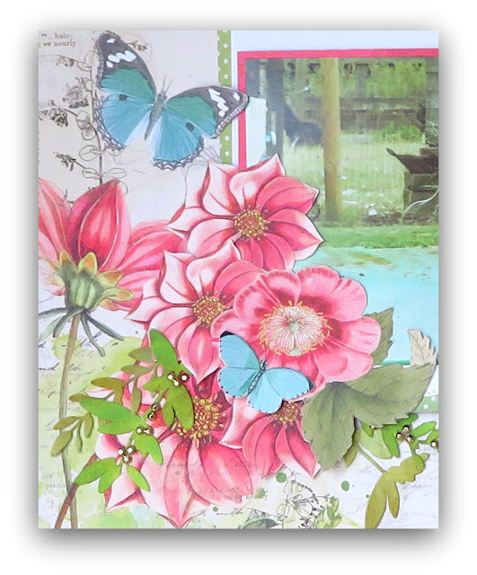 The extra flowers are cut from one of the papers in the pack and the title is from the sticker sheet.